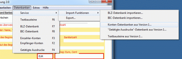 Aber natürlich bietet das Programm die Möglichkeit, nach der Inbetriebnahme die Datenbanken "manuell" zu importieren. Wählen Sie dazu im Menü "Datenbanken" unter "Service" das Untermenü "Import-Funktionen":